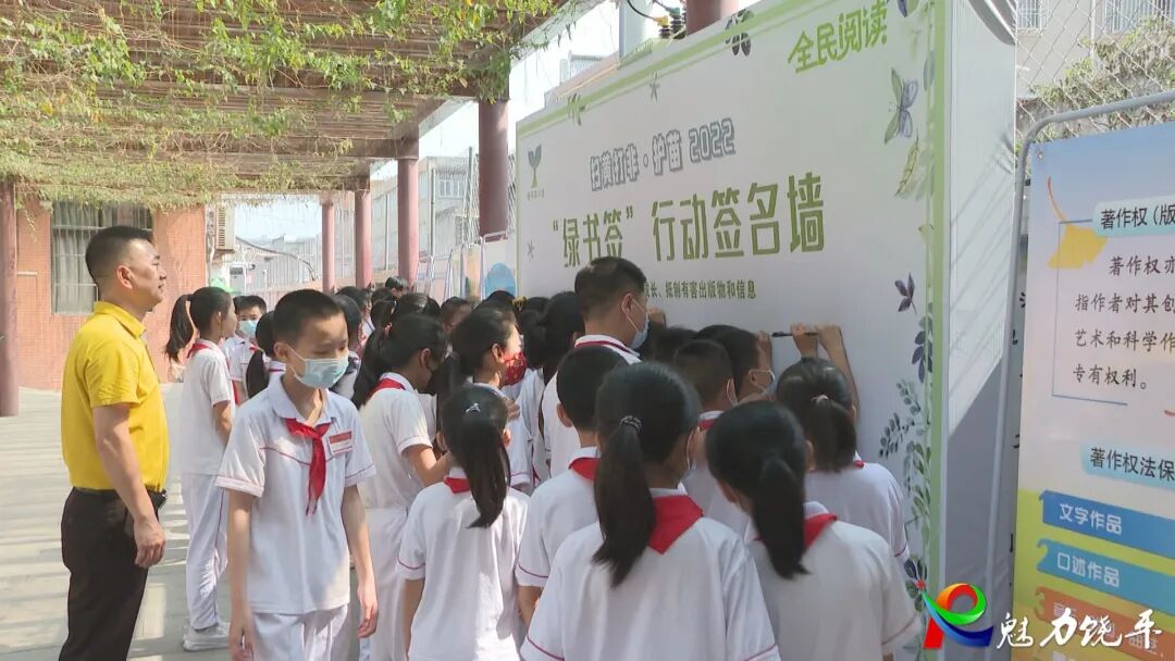 在县师范附属小学,主办方举办“绿书签”宣传进学校活动,给学生们传递保护知识产权的良好观念,打造“绿书签”品牌公益形象,大力倡导青少年绿色阅读、文明上网。